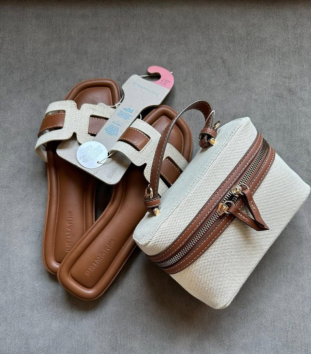 Cet ensemble Primark allie confort et style avec des sandales en marron et beige dotées de brides en tissu tissé, et une sacoche assortie. Les sandales offrent une semelle confortable pour un usage quotidien. La sacoche compacte est parfaite pour transporter vos essentiels. Ce duo chic est idéal pour les sorties décontractées ou les voyages estivaux, ajoutant une touche de sophistication à toute tenue. Conçus avec des matériaux de qualité, ils garantissent durabilité et élégance. Un choix idéal pour compléter votre garde-robe estivale avec un flair moderne.